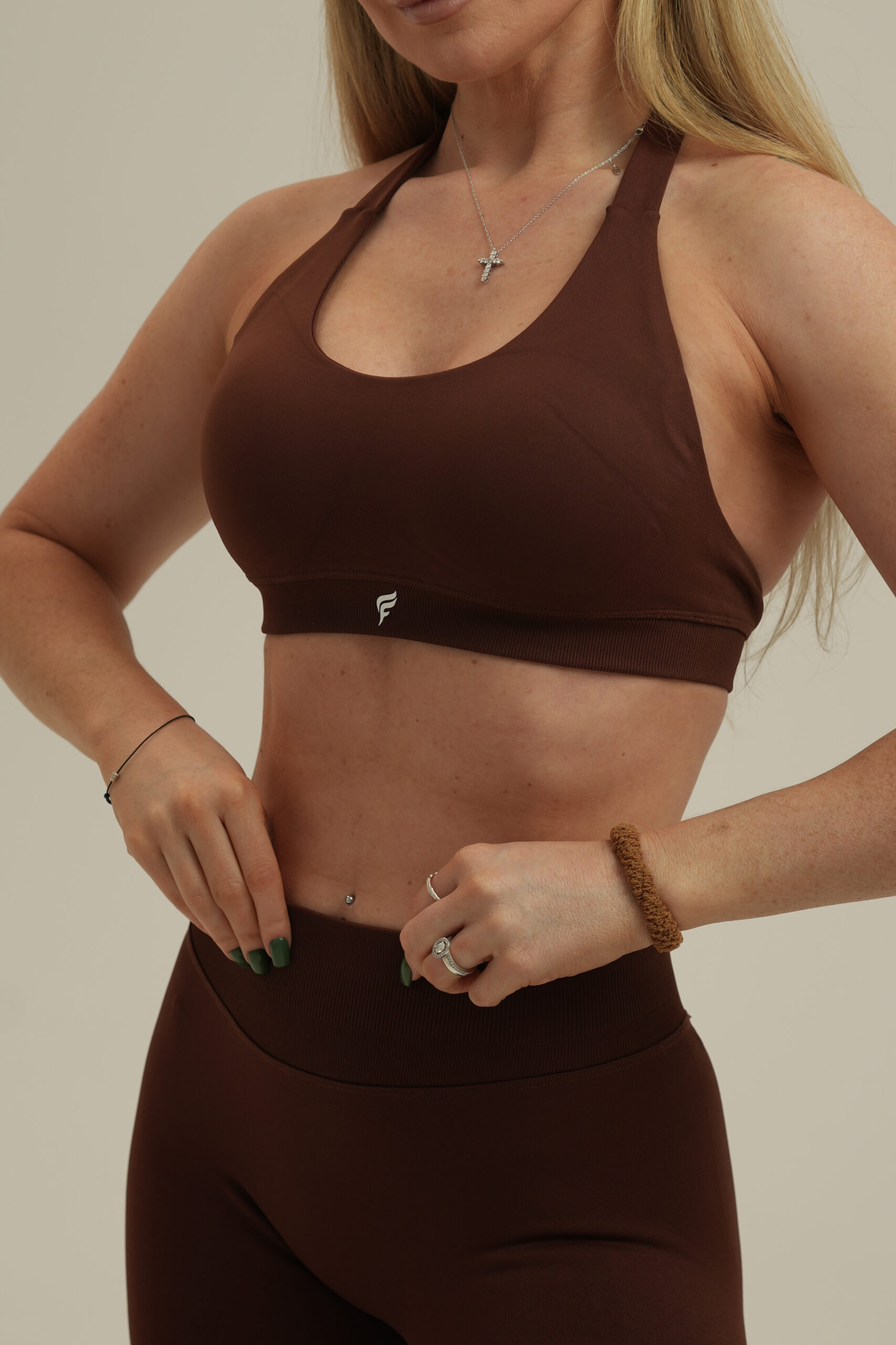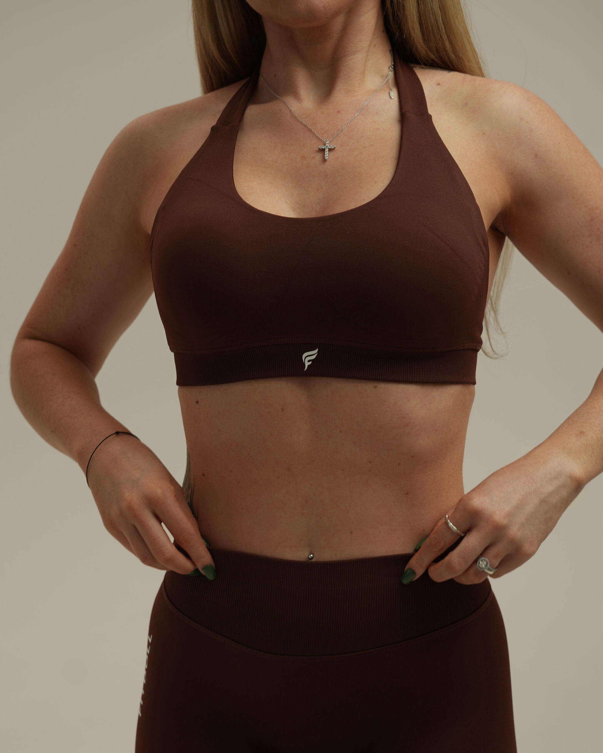 AFFECTS Halter Neck liemenėlė sukurta išryškinti siluetą ir suteikti stabilumą treniruotės metu. Visiškai atvira nugara leidžia išryškėti nugaros raumenims, o halter tipo konstrukcija užtikrina patikimą atramą.